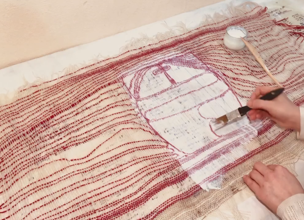 Dessin tissé sur métier à tisser à basse lisse collé sur papier 1943,
